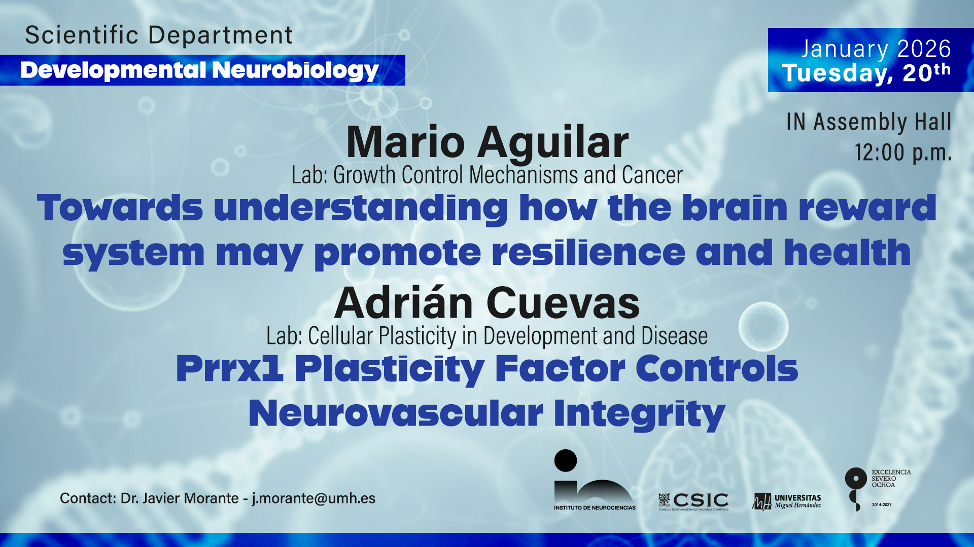 Adrián Cuevas (Angela Nieto laboratory): “Prrx1 Plasticity Factor Controls Neurovascular Integrity”