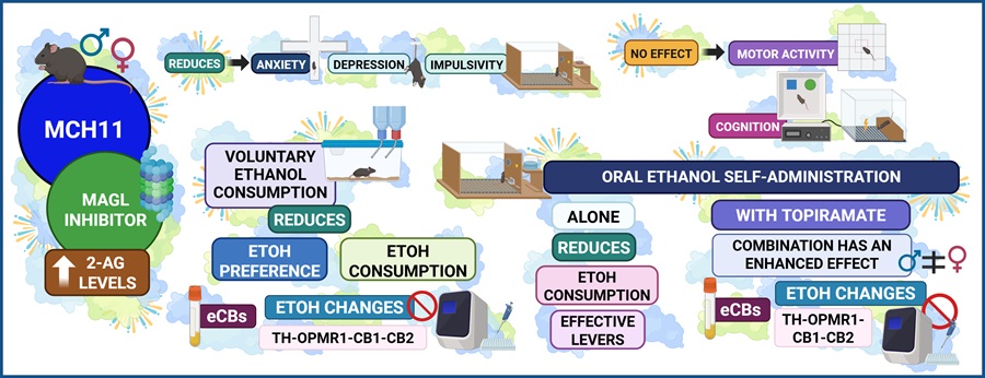 MCH11, a new monoacylglycerol lipase inhibitor, reduces ethanol consumption and motivation to drink in mice, with sex-dependent differences.