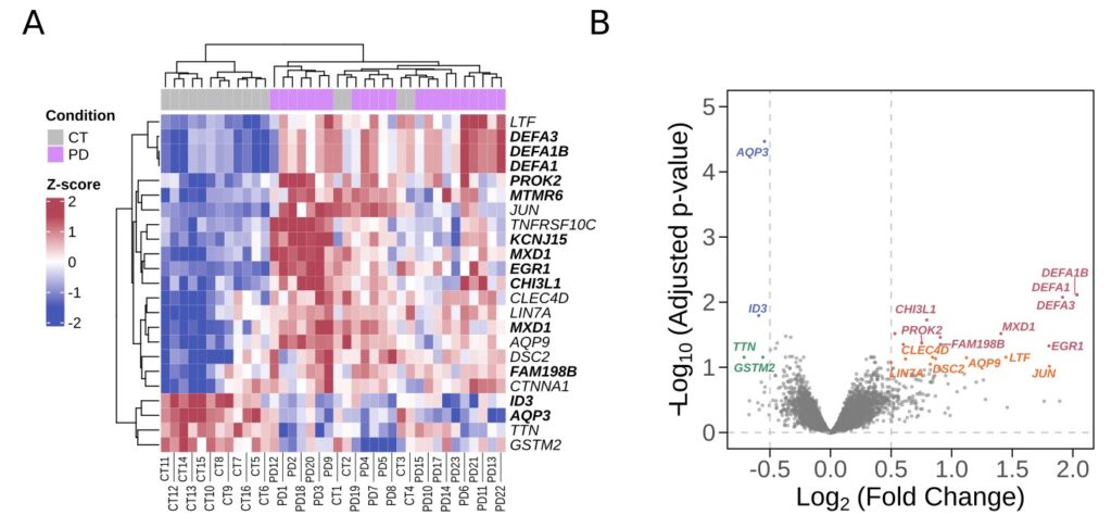In total, 22 genes showed differential expression between Parkinson’s patients and healthy volunteers. Some are involved in immune responses, supporting the hypothesis that inflammation and the immune system play a role in the disease’s development. Others are linked to molecular transport within brain tissue and iron homeostasis, processes previously associated with neurotoxicity.