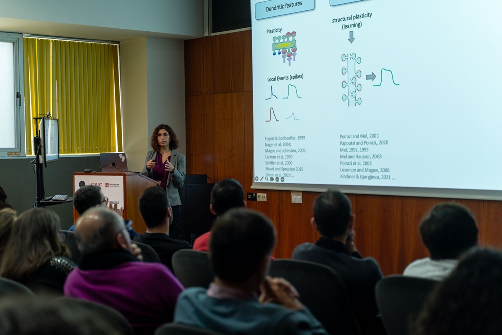 In addition, researcher Panayiota Poirazi, Director of Research at the Institute of Molecular Biology and Biotechnology, a centre of the Foundation for Research and Technology Hellas located in Heraklion (Greece), delivered today’s keynote lecture. In her talk, entitled ‘Learning with dendrites in brains and machines’, she addressed the role of dendrites in learning processes in both the brain and artificial systems, highlighting how these mechanisms can inspire new models of computation and machine learning.